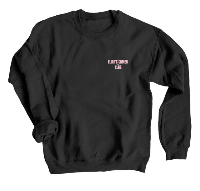 A black crewneck sweatshirt provides an endlessly flexible wardrobe.